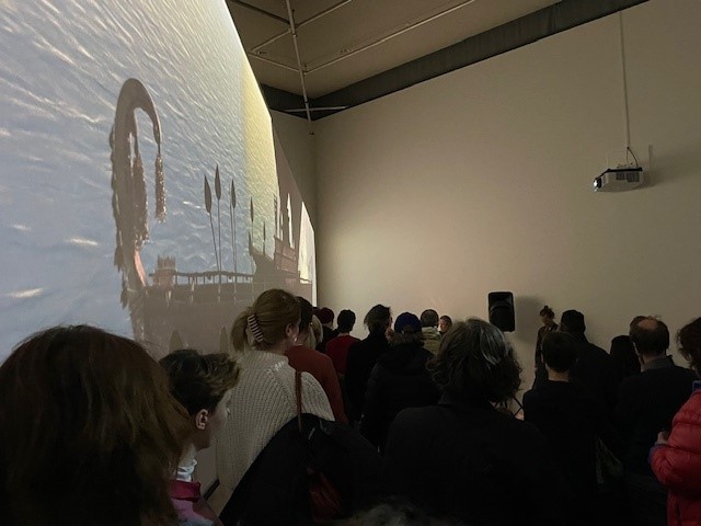 Die Kurator*innen Edit Molnár und Marcel Schwierin haben den international bekannten Künstler eingeladen eine neue Arbeit zu realisieren, die in Oldenburg erstmals gezeigt wird. Im Mittelpunkt der Ausstellung seht das Luf-Boot, ein 16 Meter langes Ausleger-Segelboot, das von Bewohnerinnen der gleichnamigen Insel in Papua-Neuguinea im späten 19. Jahrhundert für Seefahrten, Fischfang und Zeremonien genutzt wurde. Tuân Andrew Nguyên hat sich mit der Geschichte des Bootes auseinandergesetzt, das sich heute in der Ethnologischen Sammlung des Humboldt Forums in Berlin befindet, und über dessen Provenienz in den vergangenen Jahren kontrovers diskutiert wurde. In der 3-Kanal-Videoinstallation ABOVE THE SEA, AGAINST THE SKY, die im Eingangsbereich des Edith-Russ-Hauses für Medienkunst zu sehen ist, sowie in mehreren Objekten, die der Künstler gemeinsam mit Bewohner*innen der Insel Luf geschaffen hat, geht es Nguyên darum das Boot als eine „Brücke zwischen der Vergangenheit und der Zukunft, zwischen der vorherrschenden Erzählung über den deutschen Kolonialismus und den ausgelöschten Geschichten der Menschen in Papua-Neuguinea“ zu zeigen.