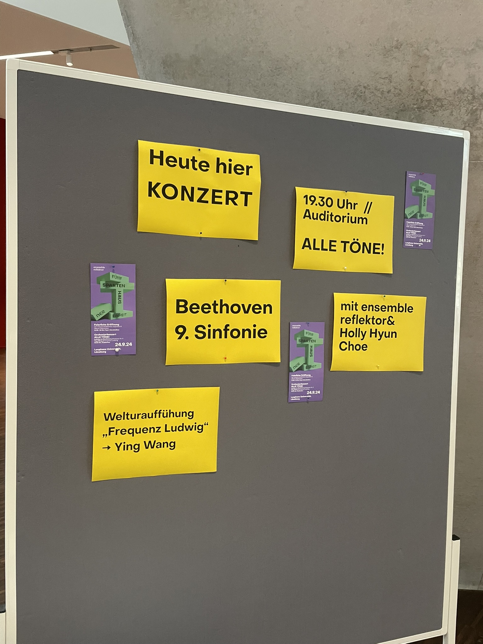 Hier wurde das Projekt am 24. September 2024 in der Leuphana Universität mit einem Sinfoniekonzert rund um Beethovens 9. Sinfonie sowie einem diskursiven Programm feierlich eröffnet. Die Sinfonie, die in besonderem Maße für demokratische Werte und Gerechtigkeit steht, wurde dabei um eine zeitgenössische Perspektive erweitert; statt des Chorfinales erklang eine Auftragskomposition der chinesisch-deutschen Komponistin Ying Wang. Den zweiten Teil des Konzerts gestalteten Schüler*innen der Wilhelm-Raabe- und Rudolf-Steiner-Schule Lüneburg zu den Themen Vielfalt und Klimawandel.