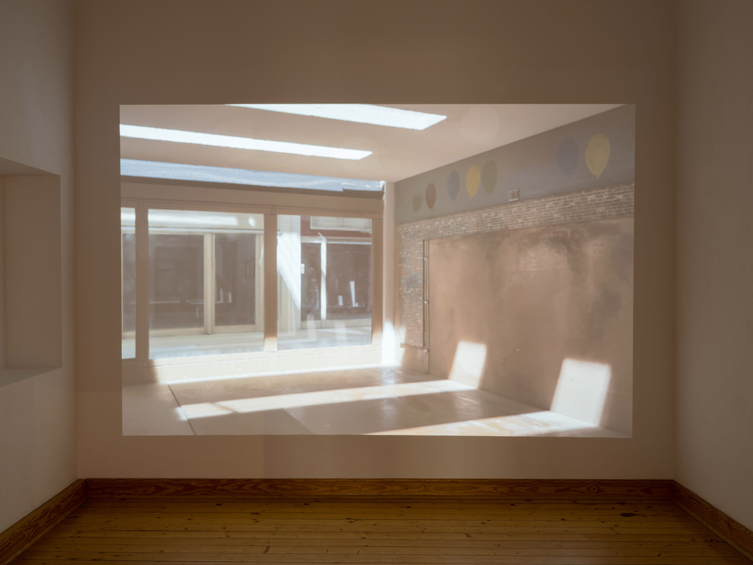 Im ersten Stockwerk des Schlosses Agathenburg zeigt Christian Haake seine Videoarbeit „White Elephant“ (2023), die verschiedene Ansichten eines verlassenen Einkaufszentrums zu zeigen scheint, bei dem es sich um ein vom Künstler aus der Erinnerung errichtetes Modell einer aufgegebenen Shoppingmall handelt.