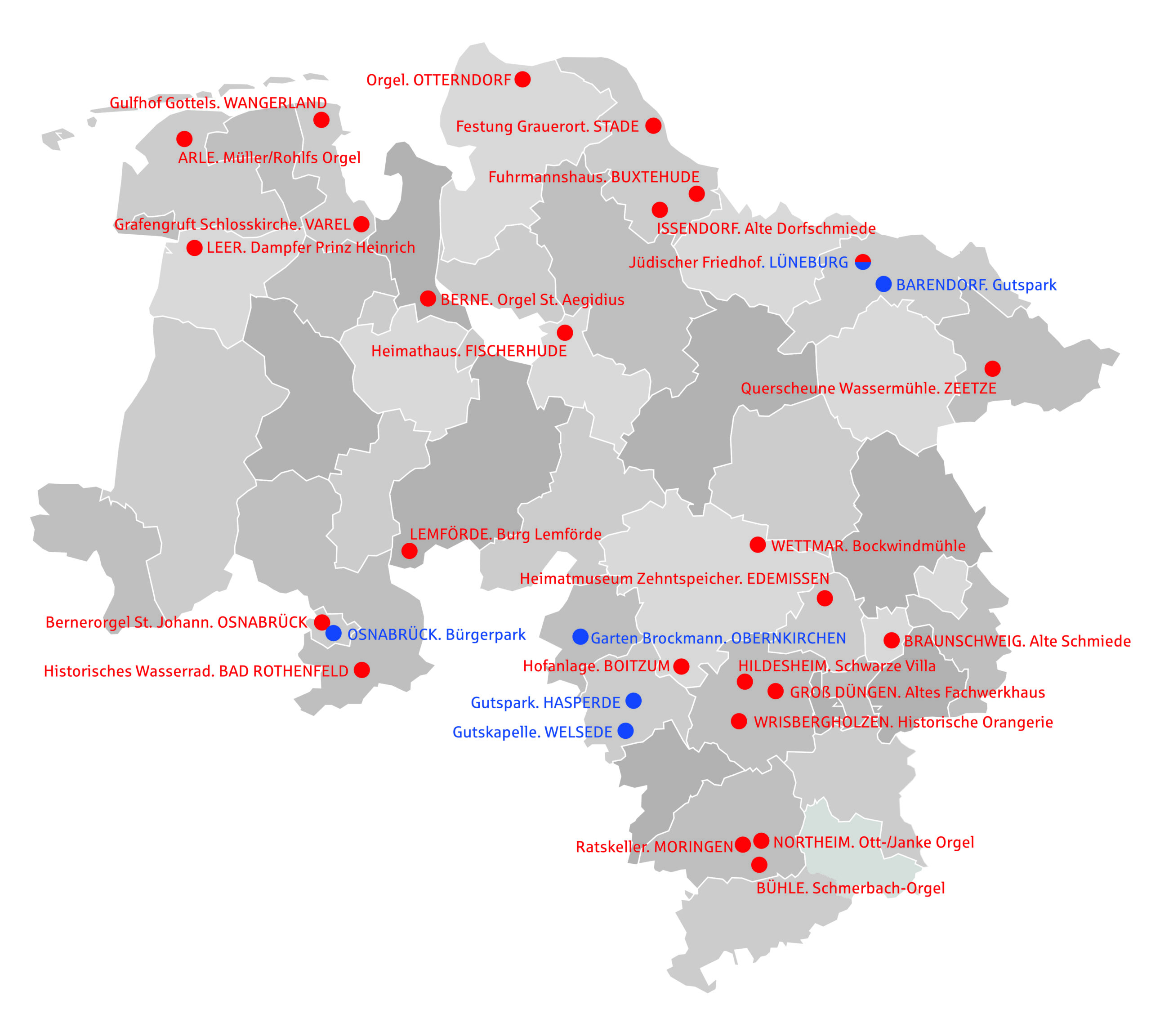 Um die Vielfalt des kulturellen Erbes in Niedersachsen zu sichern, fördern die Niedersächsische Sparkassenstiftung (NSKS) und die VGH Stiftung (VGHS) die Denkmalpflege. Dabei unterstützt die Niedersächsische Sparkassenstiftung denkmalpflegerische Maßnahmen an historischen Bauten sowie im kirchlichen Bereich den Erhalt historischer Orgeln. Die VGH Stiftung unterstützt die Restaurierung historischer Garten- und Parkanlagen und die damit in Verbindung stehenden Bauwerke.