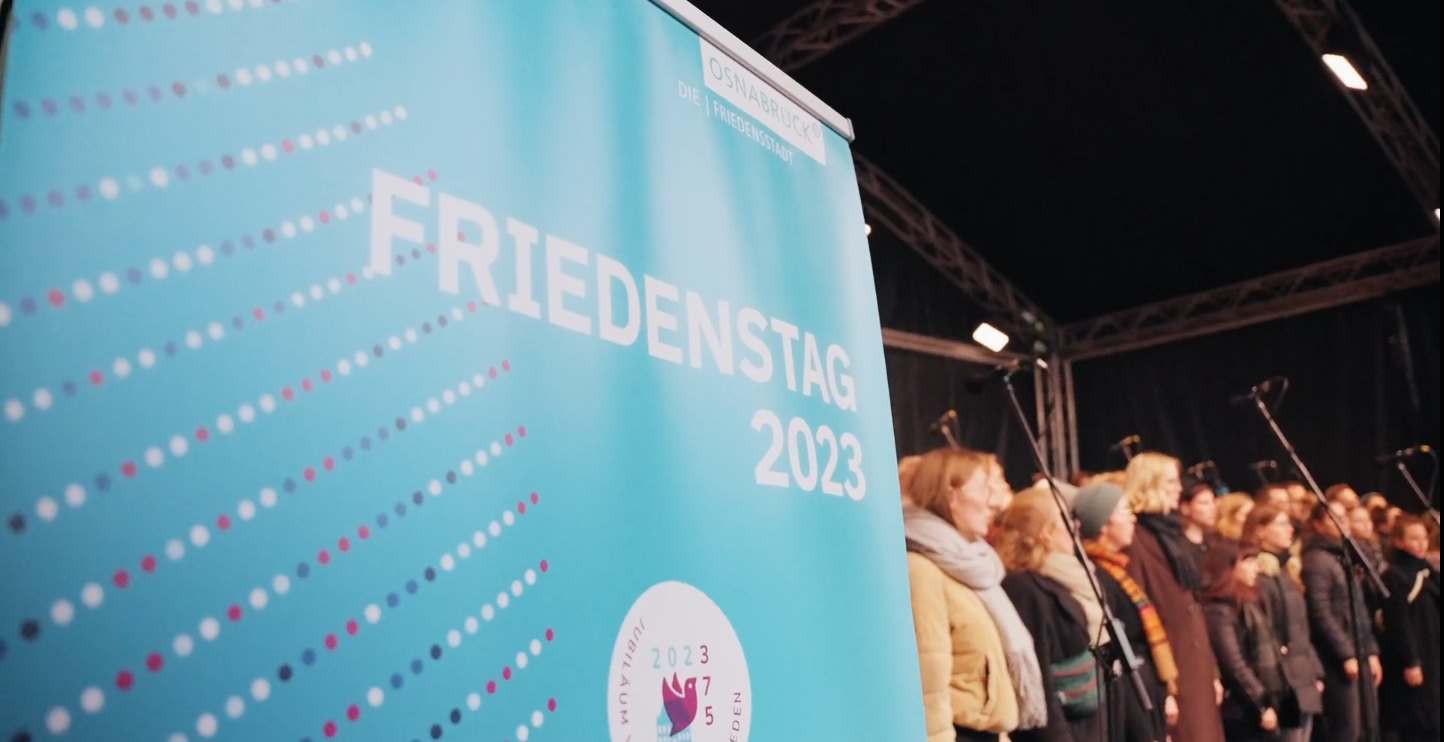Mit einem vielstimmigen Chor erinnerte die Stadt Osnabrück an den Tag, als vor 375 Jahren der 30-jährige Krieg endete. Nachdem der Friedensvertrag am 24. Oktober 1648 in Münster unterzeichnet worden war, brachte ein Friedensbote die gute Nachricht nach Osnabrück – der Überlieferung nach fingen die Menschen vor Freude und Erleichterung spontan an zu singen.